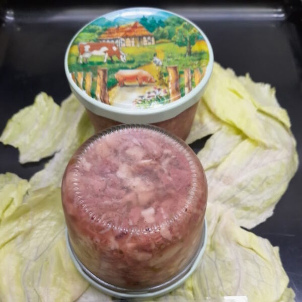 Genieße die traditionelle Hausmannskost neu interpretiert mit unserer Schweinesülze im Glas! Zartes Schweinefleisch in würziger Gelee, perfekt abgestimmt und bereit für den Genuss. Ideal zu Brot oder als herzhafter Snack – Qualität im Glas!