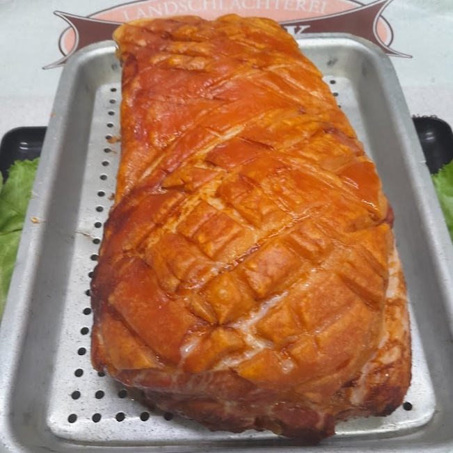 Entdecke den herzhaften Genuss unseres Krustenbraten-Backschinkens! Gepökelt und perfekt gebacken, überzeugt er mit knuspriger Kruste und saftigem Fleisch. Ein echtes Highlight für jeden Fleischliebhaber – zart, würzig und voll im Geschmack!